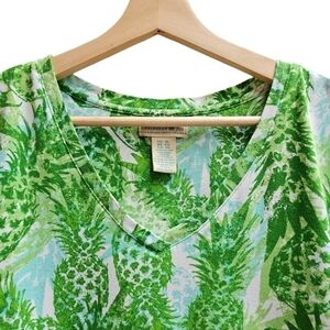 Caribbean Joe Bermuda Upside-down Pineapple V-Neck Top, Size XL