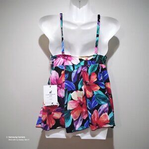 Caribbean Joe Island Supply Co. Black Tropical Floral Sweetheart Tankini Swim Top Separate Mix & Match Padded Cups and Adjustable Straps. New With Tags. Various Sizes. FREE Bonus "Thank You" gift with purchase.