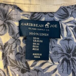 Caribbean Joe Blue and White Tropical Print Short Sleeve Linen Button Up Size M