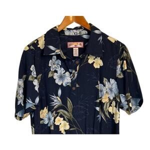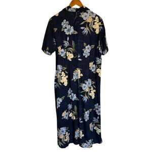 Caribbean Joe Dress Women 1X Navy Blue Tropical Plus Size Maxi Collared Vacation