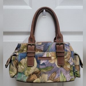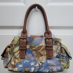 Caribbean Joe Floral Canvas/Faux Leather Handle Hand Bag