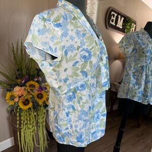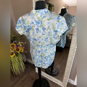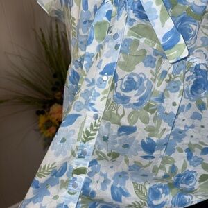 Caribbean Joe • Floral Cotton Flutter Sleeve Blouse