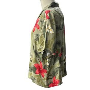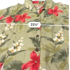 Caribbean Joe Green Tropical print Boxy Button Down Shirt Size PETITE XL