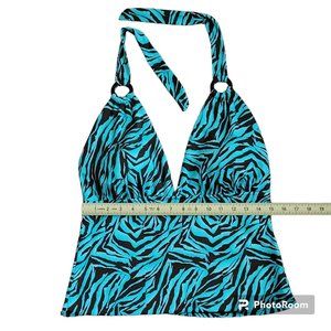 Caribbean Joe Halter Tankini Top Slim Shaper Y2K Retro Animal Print Sz 16