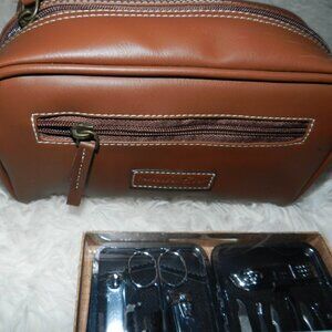 Caribbean Joe Leather Travel Toiletry Bag w/Manicure tool case🆕⌚📦🏃🏻😮💨⚡🚚