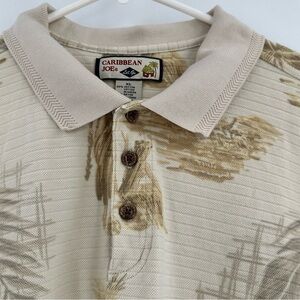Caribbean Joe Let Go Men’s Hawaiian Print Short Sleeve Ribbed Polo Size XL