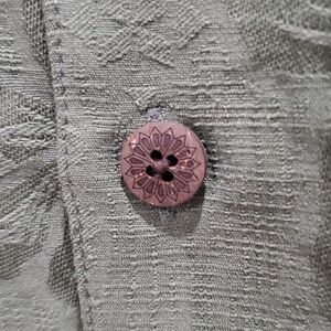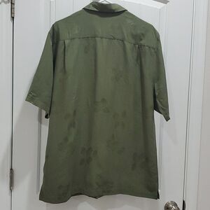 Caribbean Joe Mens 100% Silk, Tropical Embossed, Short Sleeve Shirt, Size Large , Perfect condition, wooden buttons & tropical vibe. Measurements are