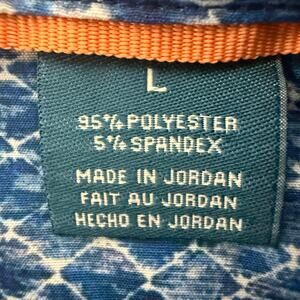 Preowned in gently used condition, this Caribbean Joe Island Supply Co. men’s button-down shirt delivers relaxed island vibes with a bold ocean-inspired print. The short sleeve design is lightweight, breathable, and has a touch of stretch for comfort. Perfect for vacations, resort wear, or casual summer outings.