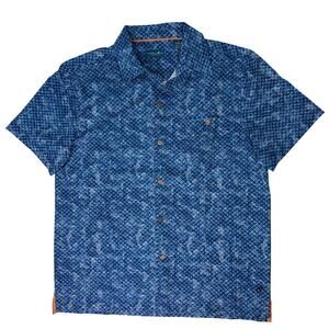 Caribbean Joe Men’s L Blue Ocean Print Short Sleeve Button Down Shirt