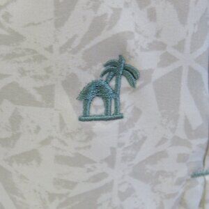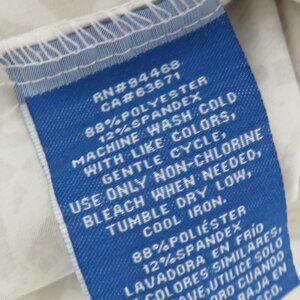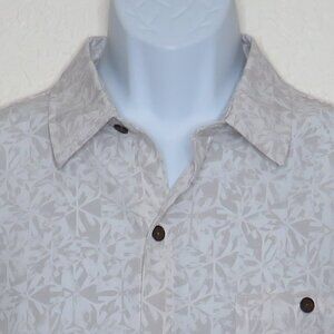 Pre-Owned Condition! 88% Polyester/12% Spandex. Handsome Tan/White BOHO Button Down Single Chest Pocket Shirt with Wood-Like Buttons to Match.