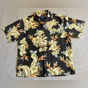 Caribbean Joe Men’s XL Hawaiian Shirt Black Floral Print Silk Button Down
