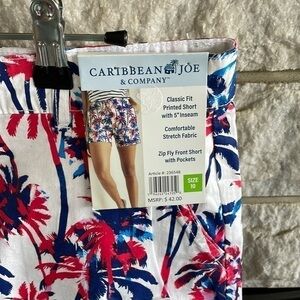 Caribbean Joe classic fit shorts with vibrant palm tree print, size 10. Perfect for summertime outings, these new-with-tags shorts are crafted for comfort and versatility.
