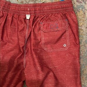 Stylish red swim shorts perfect for summer. Comfortable and durable for all-day wear. Fully lined, no stains, holes, or frays.