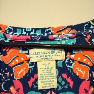 Caribbean Joe 3/4 Sleeve Multicolor Floral Pattern Resort Top