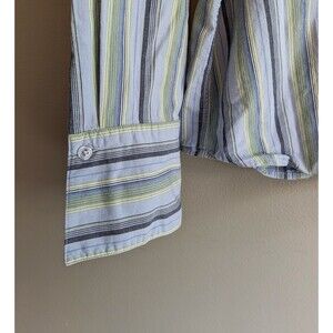 Long sleeve striped stretch shirt from Caribbean Joe. Made of 97% cotton and 3% spandex. Excellent pre-owned condition. It is about 25" long and 22" armpit to armpit. Buy with confidence. Your satisfaction is my priority. Ships fast and comes from a smoke-free home.