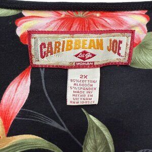 Caribbean Joe Tank Top Plus Size 2X Black Hawaiian Palms Camisole Tee NWT