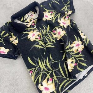 Keywords: Caribbean Joe, polo shirt, floral print, tropical, short sleeve, black polo, menswear, casual, vacation, resort wear, size medium, summer, spring, collared shirt, button down