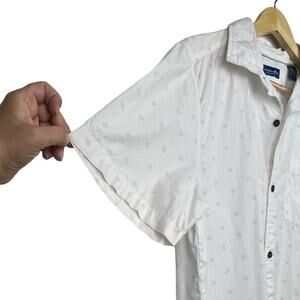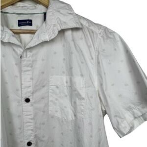 Caribbean Joe White w Off White Embroidered Palm Trees Short Sleeve Large