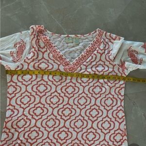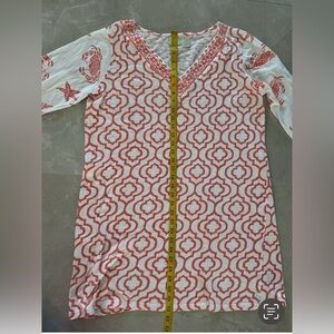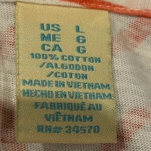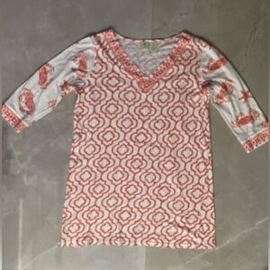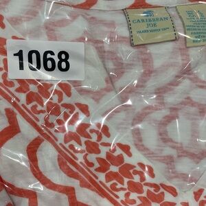 Caribbean Joe Woman Top Size Large Orange White Color V-neck 3/4 Sleeve Pullover