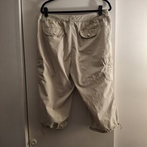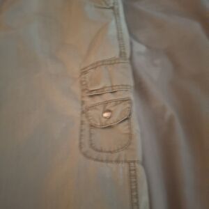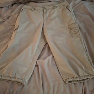 Carribean Joe women's Comfortable khaki capris with a relaxed fit. Ideal for everyday wear. size 14P. waist side to side measures 17 inches. Length 29 inches. inseam 19 inches.