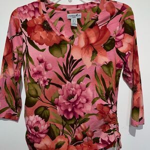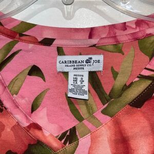 Caribbean Joe Women's Multicolor Floral V-Neck 3/4 Sleeve Blouse Petite Small