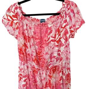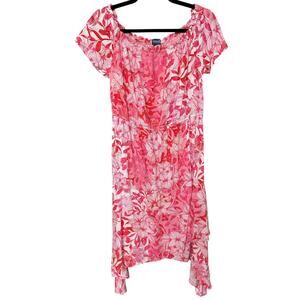 Caribbean Joe Women's Pink + Red Tropical Hawaiian Asymmetrical Dress Size Large