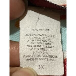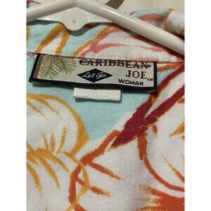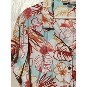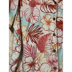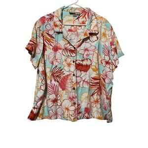Caribbean Joe Womens Sz 3X Wooden Button Up Floral Hawaiian Shirt Vacation