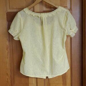 Caribbean Joe Yellow Ruffled Neck & Short Sleeve Button Down Sz L Blouse Tunic