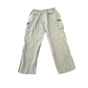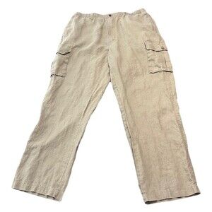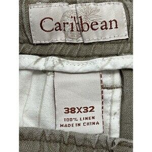 Caribbean Linen Cargo Pants Mens 38x32 Beige Relaxed Fit Drawstring Summer Beach