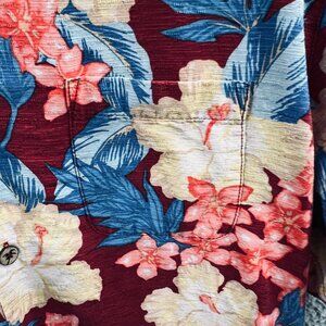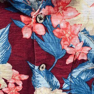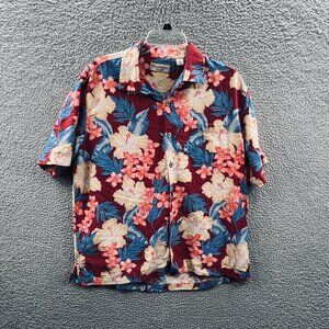 Caribbean Men Hawaiian Shirt Large Blue Pink Pure Silk Floral Aloha Button Front