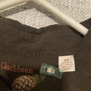 Caribbean Mens Hawaiian Shirt Brown Tropical Button Down Silk Blend Sz 4X.