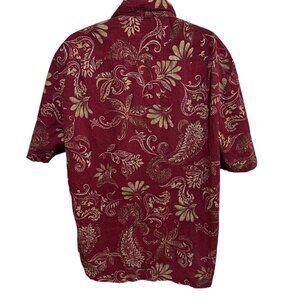 Caribbean Men’s Large Maroon Leaf Print Short Sleeve Shirt 2000s Cotton Blend