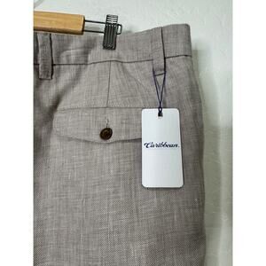 Caribbean Mens Linen Blend 9" Inseam Tan Zip Up Casual Vacation Shorts Size 40