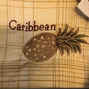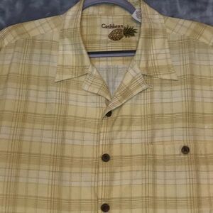 Caribbean Men's Short Sleeve Button Up Shirt Pale Yellow Plaid Size XL