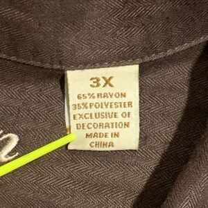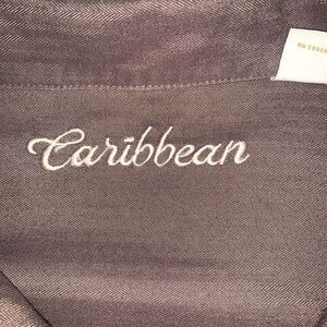 Caribbean Mens Size 3X Button Front Shirt Brown Embroidered Palm Trees Motif