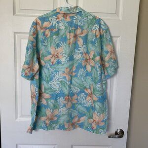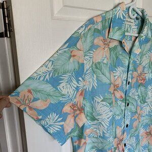 Caribbean Mens XL Button Front Hawaiian Tropical Shirt Summer Beach Blue Green
