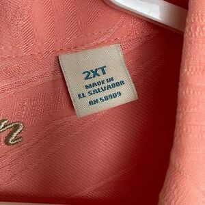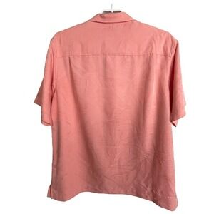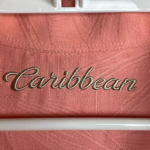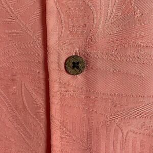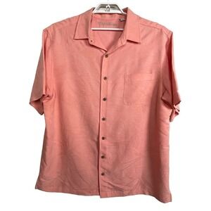 Caribbean Peach Etched Palms B&T Men's 2XT Camp Button Down Short Sleeve Shirt