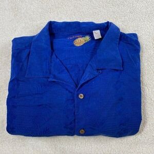 Caribbean Pineapple Silk Shirt Mens Sz 3XT Blue Hawaiian Camp Button Up Beach