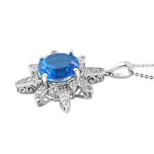 Caribbean Quartz (Triplet) and Natural White Zircon Accented Pendant With 20" Necklace. Set In Platinum Over 925 Sterling Silver.