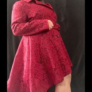 Carribean Queen Collared lace over mesh Victorian Style double breasted evening coat. Belted Waisted with button closure. Deep hidden pockets on side. Comes in Wine color as well as an Olive Color. New Fits Women sizes 14-16
