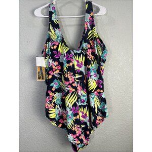 Caribbean Sand One Piece Bathing Suit Sz 24W Control Power Mesh Modest Floral