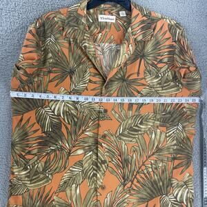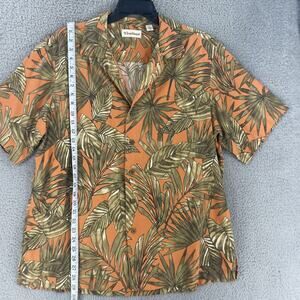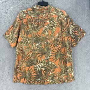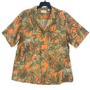 Caribbean Shirt Mens Large Orange Palm Leaf Silk Cotton Hawaiian Aloha Button Up