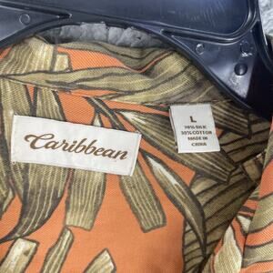 Caribbean Shirt Mens L Silk Cotton Hawaiian Button Up Beach Tropical Vacation