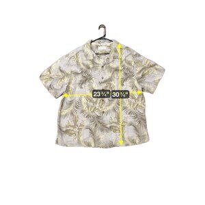 Caribbean Silk Blend Leaf Button Front Shirt Sz 2XB Gray Green Tropical Beach
