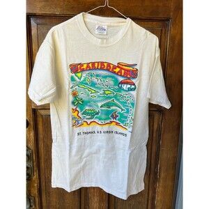 Caribbean St. Thomas Tee Hanes Shirt Adult Medium M White Short Sleeve Mens