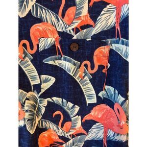 Caribbean Joe Flamingo Palms Blue Hawaiian Button Down Pocket Size Medium (8686)