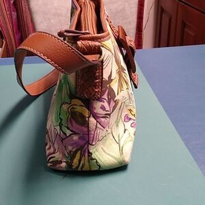 Caribbean Joe Purple and Brown Floral Shoulder Bag with Leather Accents