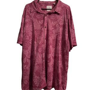 Caribbean Men's Red Short Sleeve Collared Buttons Up Tropical Floral Shirt Size XXL