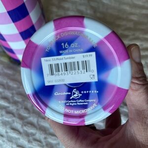 Caribou Coffee Tumblers 16oz Picnic Plaid pink purple yellow Sold Out 2 NWT