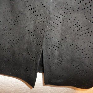 Carina New York Black Perforated Suede Midi Skirt Sz 16